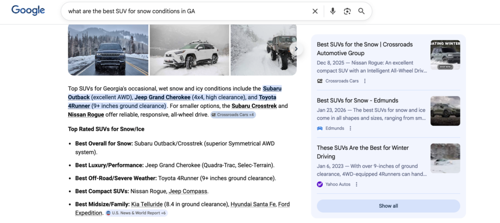 - Your dealership appears in AI Overviews